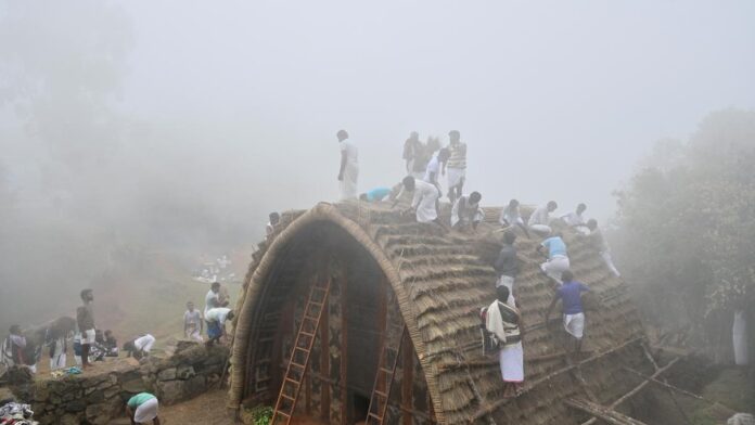 #Toda #tribe #Nilgiris #rethatch #sacred #temple #rare #grass